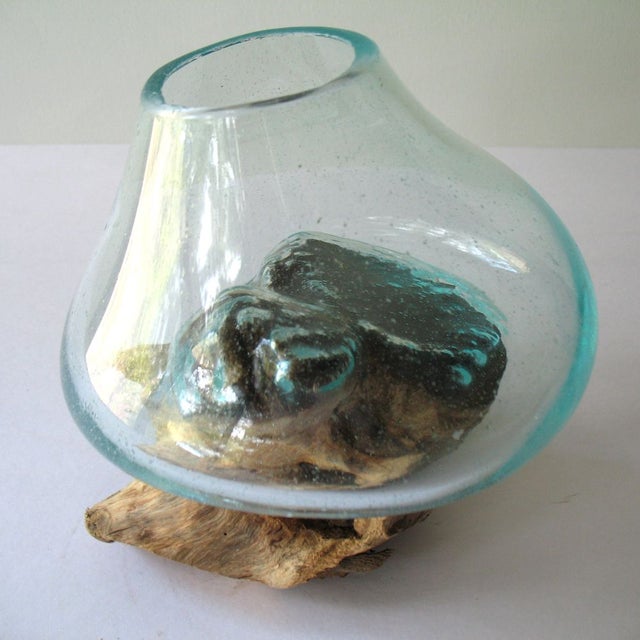 It's as aesthetically pleasing as it is functional. Anyhoo, a few weeks ago i shared my glass and driftwood terrarium at over the big moon and wanted to give you all the details today. The hand blown glass is placed on the teak wood while it is still hot to make an unique display piece. Natural driftwood and clear hand blown glass bowl can be used as a decorative sculpture or plant terrarium **plants and rocks not included**. These handcrafted terrariums are made by molding melted recycled glass against the natural wood base, which singes lightly as. Absolutely stunning molten glass on driftwood. This beautiful and unique molten glass on driftwood base can be used to create your own terrarium, succulent planter, flower vase.possibilities are endless. It features tillandsia plants that grow without soil by absorbing water and nutrients through their leaves. Mouth blown terrarium crafted from recycled molten glass slumped on teak wood tabletop decor sculpture hand crafted by glass artist on the island of bali. It will make great gifts as well. Unique to each piece of driftwood, the molten glass is hand blown directly on each piece of wood. How are you doing today my friends? Molten glass is used in the crafting and construction skills, as well as some quests, to form glass items.