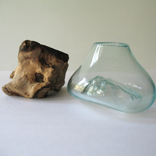 This beautiful and unique molten glass on driftwood base can be used to create your own terrarium, succulent planter, flower vase.possibilities are endless.